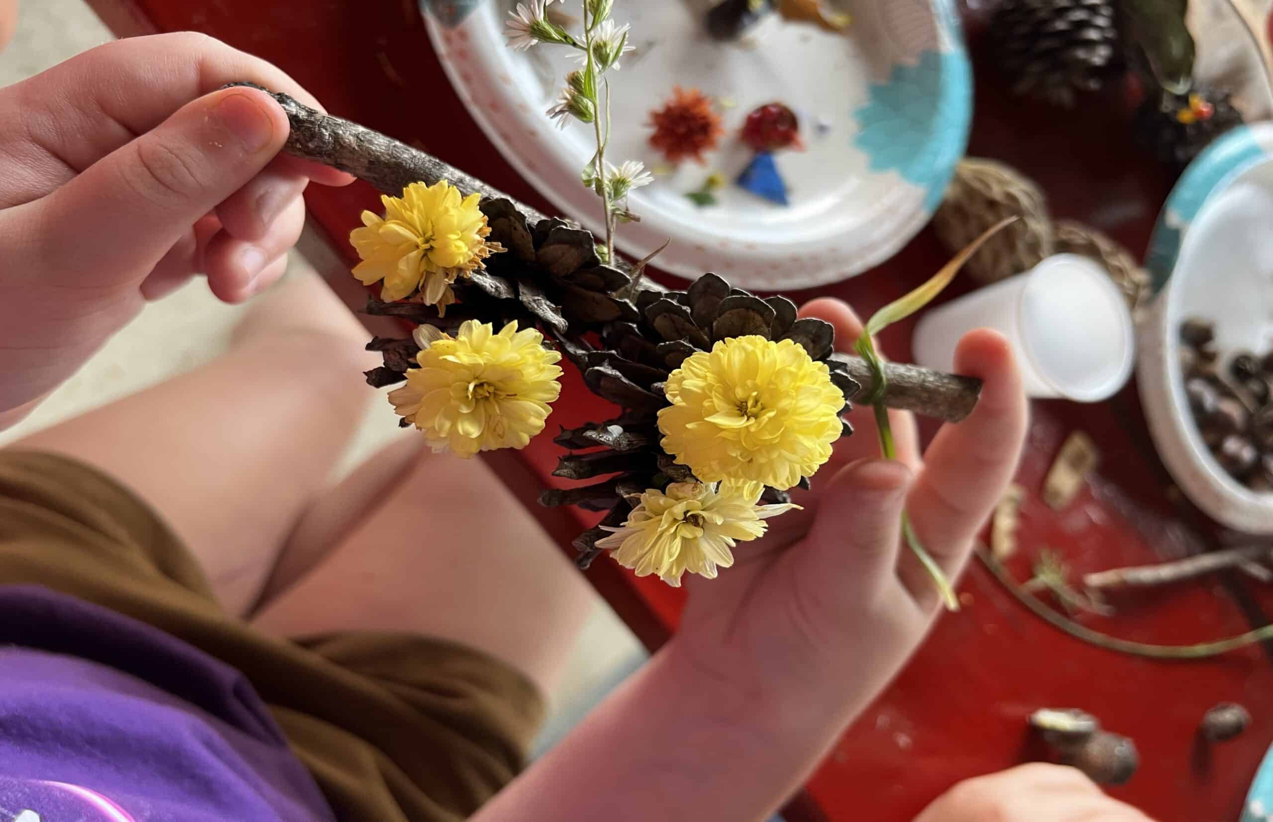 - Nature Crafts: Using natural materials like leaves, twigs, rocks, and pinecones to create art is a fun way to combine creativity and nature. Plus, your child will get added time in nature as he hunts for his natural art supplies!